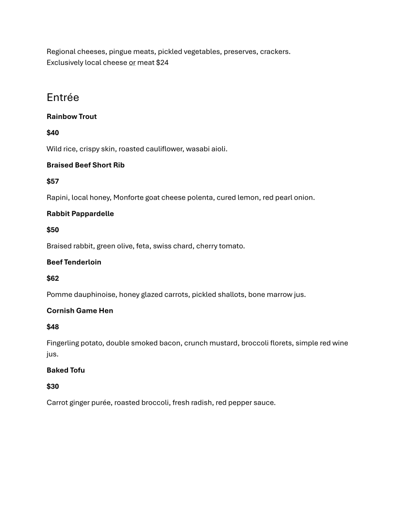 Local pingue meats, Niagara cheeses, house pickles, crunch mustard, crackers.