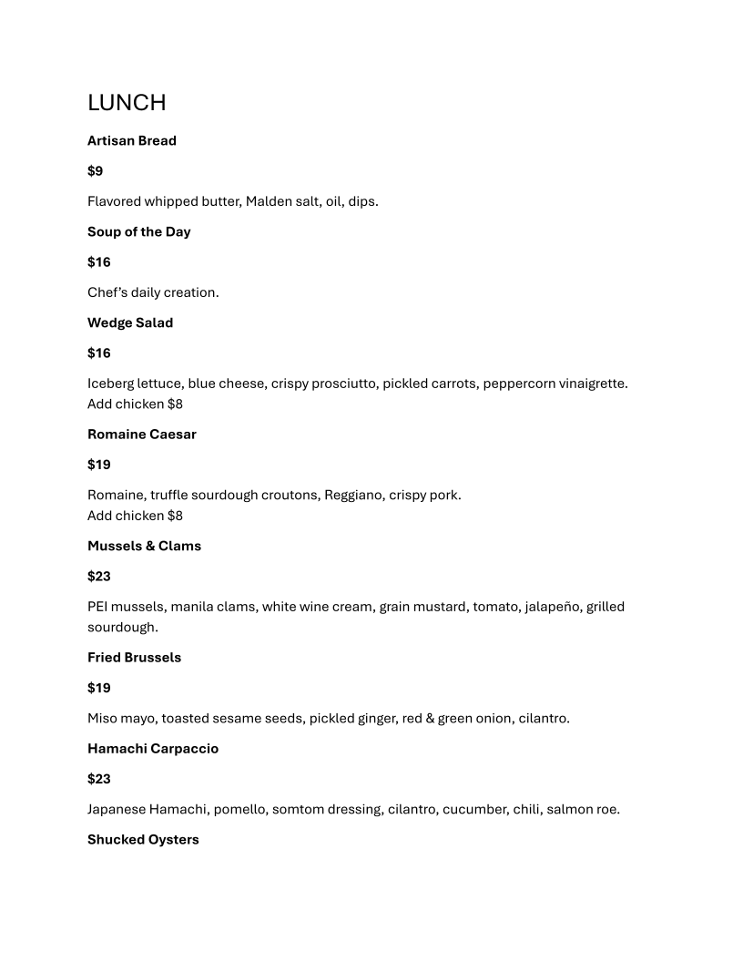 PEI mussels, manila clams, white wine cream, grain mustard, tomato, jalapeno, grilled sourdough.